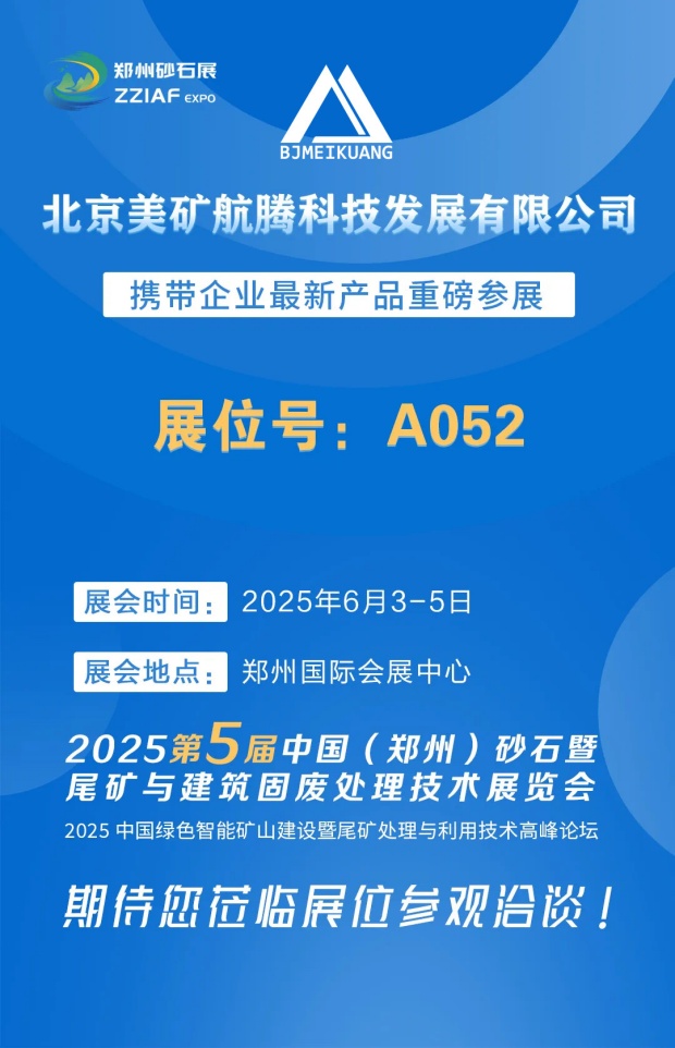 北京美礦航騰科技發(fā)展有限公司誠摯邀請您蒞臨 2025第五屆中國(鄭州)砂石及尾礦與建筑固廢處理技術(shù)展覽會,與我們共話行業(yè)前沿技術(shù),探討合作新機遇!