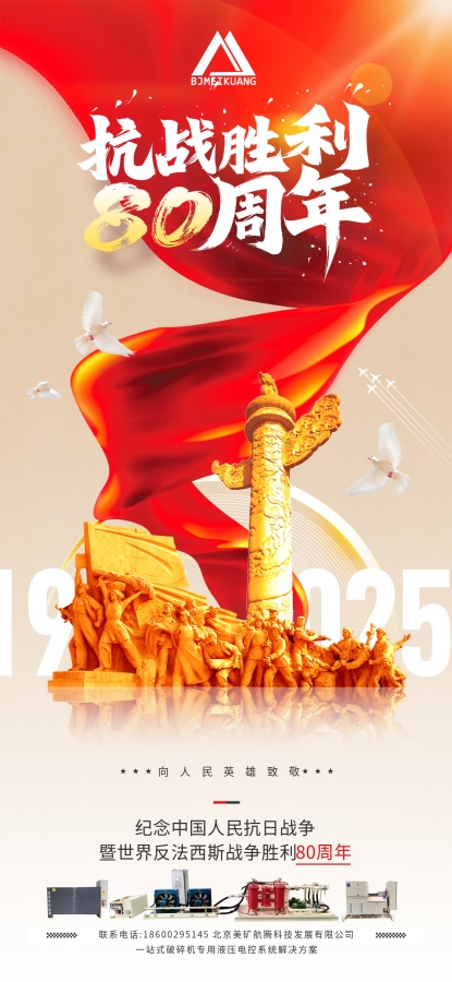 八十年前,先輩浴血奮戰(zhàn),換得山河無恙;八十年后,吾輩賡續(xù)精神,篤行實(shí)干報(bào)國。在紀(jì)念中國人民抗日戰(zhàn)爭暨世界反法西斯戰(zhàn)爭勝利 80 周年之際,美礦航騰以初心敬歷史,以行動(dòng)踐使命。深耕礦機(jī)智能液壓系統(tǒng)制造領(lǐng)域,我們集結(jié)軟件、液壓、機(jī)械、電氣工程師核心團(tuán)隊(duì),自主研發(fā)破碎機(jī)、制砂機(jī)等礦機(jī)液壓潤滑控制系統(tǒng),量身定制礦山智能解決方案,從圓錐破碎機(jī)、旋回破碎機(jī)、鄂式破碎機(jī)、反擊式破碎機(jī)、制砂機(jī)、振動(dòng)設(shè)備、移動(dòng)破碎站的液壓潤滑控制系統(tǒng)的開發(fā)應(yīng)用,以及供應(yīng)適用于國際品牌美卓/山特維克等系列破碎篩分設(shè)備的備品備件,美礦航騰以硬核技術(shù)服務(wù)海內(nèi)外客戶,深受好評。銘記歷史不是停駐過往,而是以奮斗奔赴未來。美礦航騰將始終秉持科技創(chuàng)新理念,以更優(yōu)質(zhì)的礦機(jī)液壓產(chǎn)品、更專業(yè)的服務(wù),在實(shí)業(yè)興邦路上堅(jiān)定前行,為礦山行業(yè)發(fā)展、國家建設(shè)注入力量!